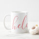 Une magnifique tasse avec un nom personnalisé dans une police de script moderne et élégante. En rose et blanc. Merveilleux comme un jour de la mère, vacances, anniversaire, ménage ou cadeau de servante.