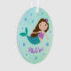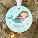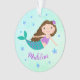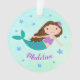 Ce joli ornement de sirènes personnalisées présente une sirène fantaisie et un motif d'étoiles de mer sur un arrière - plan aqua aquarelle. Le design est le même sur le dos. Personnalisez le texte du script avec un nom.