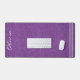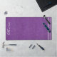 Élégant tapis de bureau arrière - plan en denim violet avec nom de script vertical blanc et trois traits d'accent pour l'équilibre. Modifiez ou supprimez facilement le nom à l'aide du Modèle fourni. Le tapis de bureau de 31,5 po x 15,5 po est fabriqué à partir d'un matériau en néoprène de 3 mm d'épaisseur durable avec dessus en polyester, un support antidérapant et le bord est ourlé. Pour plus d'informations, reportez-vous à la section "À propos de ce produit" à côté.