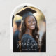 Carte faire-part photo en forme d'arc avec votre photo et le nom du diplômé dans une police de texte moderne et élégant avec l'année ci-dessous. Ajoutez une photo supplémentaire et un message personnalisé au dos.