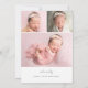 Faire-part de naissance moderne avec script moderne et collage photo sur le dos.