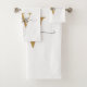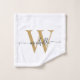 Ensemble de serviettes de bain personnalisées Féminin Élégant Moderne Blanc et Or Monogramme Initial Nom Signature Écriture. Caractérisé par un prénom (ou nom de famille) dans une jolie typographie de style lettrage manuscrit avec fioritures (ou calligraphie) avec monogramme initial en or et noir sur fond blanc. Superbe cadeau féminin de pendaison de crémaillère, également pour un anniversaire, enterrement de vie de jeune fille, anniversaire des 16 ans, douche de mariée, mariage, fête des mères, cadeau d'anniversaire de mariage et pour une fête de remise de diplôme et c'est pour la fille qui aime les choses élégantes et stylées.