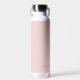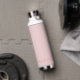 Cette bouteille d'eau comporte un nom quartz rose personnalisé dans une police de bloc sur un simple arrière - plan rose pâle.