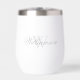Ce caisson à vin thermique à base blanche avec couvercle présente un nom de famille à script gris foncé sur un monogramme gris clair.