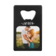 Nom personnalisé double face et photo carte de crédit ouvre-bouteille lame de bar avec bordure noire arrondie.