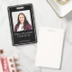 Un badge moderne avec votre nom et votre titre sur un arrière - plan noir. Ajoutez simplement votre photo et vos informations. Cette version est livrée avec une nacelle, mais vous pouvez choisir votre style de pièce jointe qui comprend, longe, clip métallique ou rétractable, ou aucune pièce jointe.