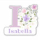 Personnalisez n'importe quel article avec un nom et une initiale avec un autocollant de découpe Floral Design. Le nom d'exemple est Isabella.