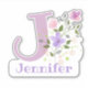 Personnalisez n'importe quel article avec un nom et une initiale avec un autocollant de découpe Floral Design. Le nom de l'exemple est Jennifer.