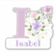 Personnalisez n'importe quel article avec un nom et une initiale avec un autocollant de découpe Floral Design. L'exemple de nom est Isabel.