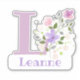 Personnalisez n'importe quel article avec un nom et une initiale avec un autocollant de découpe Floral Design. Le nom de l'exemple est Leanne.