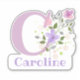 Personnalisez n'importe quel article avec un nom et une initiale avec un autocollant de découpe Floral Design. L'exemple s'appelle Caroline.