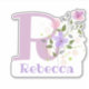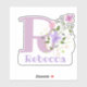 Personnalisez n'importe quel article avec un nom et une initiale avec un autocollant de découpe Floral Design. Le nom de l'exemple est Rebecca.