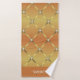 Jolie et élégante serviette de bain personnalisée et géométrique ensemble avec un look unique pour embellir votre salle de bain. Un maillage or sur un arrière - plan à dégradé d'orange doré. Modifiez le nom.