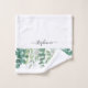 Cet élégant ensemble de serviettes de bain est décoré avec de la verdure d'eucalyptus aquarelle. Facilement personnalisable avec votre nom ou monogramme. Pour modifier davantage, utilisez l'outil de conception pour modifier la police, la taille de police ou la couleur. Parce que nous créons notre oeuvre, vous ne trouverez pas cette image exacte d'autres designers. Aquarelle originale © Michele Davies.