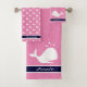 Monogramme Nom Cartoon Whale Navy Blue white Bath Towel Set. design par Sandy Closs