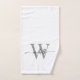 Serviette de main personnalisée Féminine Élégante Moderne Blanche et Grise à monogramme initial nom de famille signature personnalisée. Présentant un prénom (ou nom de famille) dans un joli style lettrage à queue de fantaisie typographie (ou calligraphie) avec monogramme initial gris et noir sur fond blanc. Cadeau de pendaison de crémaillère élégant et féminin, également pour un anniversaire, un mariage, une soirée d'enterrement de vie de jeune fille, une douche de mariée, la fête des mères, un anniversaire de 16 ans, un anniversaire, un cadeau d'anniversaire de mariage et pour une fête de remise de diplôme et c'est pour la fille qui aime les choses élégantes et stylées.