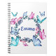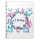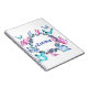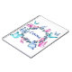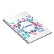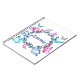 Un carnet joliment aménagé avec une couronne fleurie de papillons colorés.