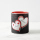 Customisez cette mignonne tasse de la Saint Valentin avec votre nom et celui de votre Saint Valentin. Offrez-en un cadeau ou achetez-le pour vous-même pour vous rappeler l'amour de votre vie. Arrière - plan noir avec parties scintillant rouge et argent en cascade, et deux coeurs rouge et blanc avec texte.