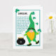 Un plaisir sur la carte de voeux de St. Patrick pour vous de customiser avec un nom, avec un joli leprechaun dansant, tenant un shamrock, à côté d'une casserole d'or. Il y a une bordure vert foncé, doublée et la Prière celtique d'origine, en lettres vertes, à côté du leprechaun. Le leprechaun a un très grand casquette, dans un motif vert, une grande barbe de gingembre, un nez énorme, des manches rayées et des chaussettes et des chaussures noires avec des boucles pour assortir son bandeau. En haut de l'espace pour ajouter un nom et le message intérieur est facile à customiser ou à supprimer.