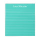 Ce bloc-notes s'affiche avec un exemple de nom personnalisé, Customisez cet élément et changez le nom de l'exemple en votre nom. Color Deep Aqua La couleur du texte et de la ligne est une couleur blanche.
