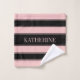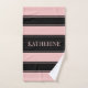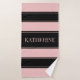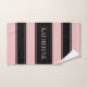Un design simple et élégant avec des rayures rose clair et noir et un nom personnalisé.