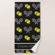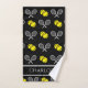 Serviette de bain de tennis frappante avec balles de tennis jaunes audacieuses et motif en raquette blanche sur un arrière - plan noir. Personnalisez avec votre nom pour une touche sportive et élégante dans la salle de bain ou à la cour. Parfait pour les joueurs de tennis, les entraîneurs et les fans, cet ensemble fait un grand cadeau pour les anniversaires, les célébrations d'équipe ou les prix de tournoi. Comprend plusieurs tailles de serviettes pour un look complet et adapté à la fois pratique et attrayant.