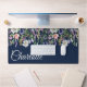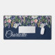 Tapis de bureau personnalisé grand ordinateur ou ordinateur portable avec un nom, fleurs sauvages et un arrière - plan de marine.