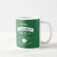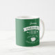 Nom personnalisé Green Hot Chocolate Mug comporte du texte blanc sur un arrière - plan vert. Le texte dit, Chocolat chaud de Jennie ici Nous avons 1 règle ne jamais le laisser cool. Le design est décoré de petits coeurs, d'une flèche et d'une tasse. Remplacez 'Jennie's' par n'importe quel nom que vous souhaitez utiliser le bouton Personnaliser.