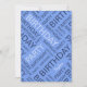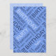 FÊTE D'ANNIVERSAIRE. Le message sur cette invitation est clair ! Il utilise les mots BIRTHDAY et PARTY dans un design typographique cool en bleu, et vous pouvez personnaliser l'avant avec un nom dans un script bleu clair correspondant. Au verso de la carte il y a beaucoup de lignes pour les détails de la fête, il suffit de taper dans les cases à customiser.