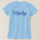 Personnalisé Nom Marilyn Basic T-Shirt Il s'agit d'un t-shirt de base pour femmes bleu clair. La chemise porte le nom de Marilyn sur le devant. Le nom Marilyn est en script dans une couleur bleue. Vous pouvez modifier le nom en cliquant sur le bouton Personnaliser. T-shirt décontracté pour femme. 100 % coton, ce t-shirt est à la fois doux et résistant - une combinaison parfaite pour un incontournable de votre garde-robe. Sélectionnez un design sur le marché Zazzle ou customisez-le et libérez votre créativité ! Ce t-shirt est adapté à la taille. La chemise est faite de 100% coton. Le t-shirt a des manches à double aiguille et le fond.