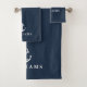 Un élégant ensemble de serviettes de conception nautique personnalisées avec une ancre de navire sur un arrière - plan bleu marine. Conçu par Thisisnotme©