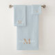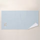 Serviette de bain moderne, élégante et tendance, présentée ici en bleu poussiéreux avec monogramme bronzé et typographie de nom blanc. Les couleurs peuvent être customisées à votre choix