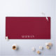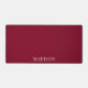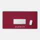 Tapis de bureau avec nom personnalisé avec votre nom dans une police blanche simple sur un fond rouge bordeaux. Typographie moderne minimaliste simple. Parfait pour la maison ou le lieu de travail au bureau.
