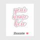 Personnalisé Modern Chic Name Texte Script Water Bottle clear Stickers avec votre texte personnalisé dans une police de calligraphie mignonne et élégante. L'autocollant est en rose vif, le style de police et les couleurs sont entièrement personnalisables.