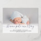 Nom script photo bébé faire-part de naissance avec un élégant script moderne et couverture blanche avec un vrai papier d'argent.
