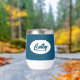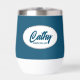 Offrez à votre demoiselle d'honneur de mariage ce gobelet à vin en acier inoxydable tendance et personnalisé, avec son nom en écriture stylisée à l'intérieur d'un design ovale blanc. La couleur de fond et l'écriture sont d'une couleur bleu sarcelle. Parfait pour une soirée de bachelorette également ! Personnalisez votre gobelet à vin en modifiant et en remplaçant le nom de la demoiselle d'honneur par le nom souhaité. Disponible dans de nombreux schémas de couleurs de mariage de demoiselle d'honneur populaires.