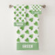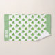 Nom et feuilles sur le kit de toilette vert clair et blanc. Le texte peut être personnalisé. Texte seulement d'un côté.