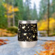 Festive en acier inoxydable tumbler thermique dispose d'étoiles brillantes or brillant motif avec ample place sur le dos pour la personnalisation. Modifiez ou supprimez facilement le texte pour le rendre vôtre en utilisant le Modèle fourni. Il a une double paroi isolante pour la rétention de température. Construction en acier inoxydable pour la durabilité. Le couvercle transparent est étanche. Idéal pour transporter des boissons chaudes ou froides ! Excellente impression et commentaires. Pour plus d'informations, reportez-vous à la section "À propos de ce produit" à côté.