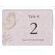 La carte élégante de tente de nombre de table de réception de mariage faite dans un beau pâlissent - rose et conception de damassé colorée par sable. Les graphiques du papillon et de la fleur de regard de relief décorent l'aile gauche. Le texte gris-foncé est personnalisable pour lire ce que vous souhaitez. Customisez le nombre et le texte pour chaque table que vous avez besoin d'une carte pour. Les produits assortis de mariage disponibles, voient des liens ci-dessous.