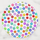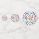 Cette table confetti design dispose de nombreux cercles/points de différentes couleurs.