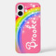 Joli arc-en-ciel avec des étoiles blanches sur un ciel rouge-rose design coque personnalisée. Cet exemple est celui de Brooke. Conçu et illustré par Sarah Trett pour www.mylittleeden.com