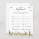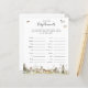 Les teintes terreuses et organiques sont toujours un choix idéal pour les baby showers. Une palette de brun, vert tendre et écru pour une fête boisée ne déçoit pas. Les teintes muettes gardent l'aspect minimal et au naturel - parfait pour les fêtes de saumons, de bois ou de jardin de printemps. Des matériaux naturels comme le bois, la verdure et la pierre rendent ce mélange de couleurs facile à intégrer dans un événement magnifique. Promenade dans les bois - collection d'histoires estivales sur les animaux de forêt mignons avec les fleurs sauvages, la verdure, les arbres. Bien sûr, il n'est pas nécessaire de jouer à des jeux au baby shower, mais considérez ceci : vous allez avoir un groupe de tous les âges, et la plupart des invités n'ont probablement jamais rencontré l'un l'autre avant la fête. Mélanger dans quelques-uns de ces jeux de baby shower classiques est une façon parfaite de briser la glace. Nos cartes de jeu double face sont un ajout élégant et pratique à toute douche. Ces cartes professionnelles sont rapidement personnalisables. Ajoutez votre libellé personnalisé à cette conception à l'aide des cases "Modifier ce modèle de conception" situées à droite de l'élément, ou cliquez sur le bouton bleu "Customiser" pour arranger le texte, modifier les polices et les couleurs et ajouter des informations ou des images supplémentaires à cette conception. Cliquez sur "Customiser plus loin" pour ouvrir les options d'édition complètes. Si vous avez besoin d'éléments de coordination (cartes de remerciements, etc.), veuillez me contacter pour une commande personnalisée. ****Pour les demandes personnalisées avec lesquelles vous avez besoin de mon aide, ne placez pas ce merchandize dans votre panier. Au lieu de cela, envoyez-moi votre demande par courriel à lauralise@iyhtvdesigns.com Un lien vers votre marchand vous sera envoyé par courriel une fois l'article disponible. Vous pouvez utiliser ce lien pour passer votre commande. Veuillez compter jusqu'à 48 heures.