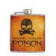 Nommez votre poison ! Ce modèle de fiole présente un humour foncé - un crâne et des os croisés dressés contre un arrière - plan vintage en or et orange en détresse avec des mots anglais en noir. Parfait pour une fête d'Halloween ou de costumes, il ferait aussi un cadeau amusant ou une faveur de fête pour quiconque aime vivre la vie sur le bord!