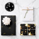 Idéal pour le papier cadeau et la décoration de tables. Modifiez le texte sur les feuilles 2 et 3 en utilisant le modèle simple fourni. "Bonne année" en texte doré sur fond noir, année et nom modernes sur fond blanc et nom sur fond d'étoiles brillantes composent ces trois feuilles de papier d'emballage de super qualité. Imprimé sur du papier mat non couché de 70 lb. (illustré) ou sur du papier semi-brillant de 80 lb. Le verso comporte des repères en grille pour une découpe et un emballage précis. Les feuilles sont emballées avec soin pour l'expédition, roulées de manière lâche et sans plis. Voir "À propos de ce produit" pour plus d'informations.