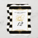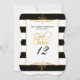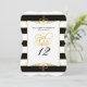 Si vous cherchez une solution élégante et peu coûteuse pour les numéros de table à votre réception de mariage, à votre douche de mariée ou à un autre événement formel, ces cartes constituent un excellent design. Ce design comporte le nom des mariés et la date du mariage en haut (vous pouvez mettre les informations que vous souhaitez s'il s'agit d'un événement différent tel qu'une fête d'anniversaire, une fonction professionnelle ou un autre événement de gala). Vous pouvez personnaliser autant de tables que vous le souhaitez - il suffit de cliquer sur la zone du modèle, de taper votre numéro de table (ou nom de la table) et de le mettre dans votre panier. Répétez autant de fois que nécessaire. Un fond moderne à rayures larges noires et blanches avec une fine bordure dorée ajoutée est associé à un élément de cadre de flourish de défilement dessiné à la main et à un mot d'art typographique en écriture call