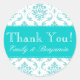 Mariage Noms Aqua Damask Merci Étiquettes. Mariage damassé Privilégie Les Stickers Merci. Présentation par Elke Clarke. Carte graphique sous licence.