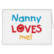 Nanny Loves Me T-shirts, cartes, autocollants, sacs de costumes, et plus avec coloré rouge, jaune, et bleu texte et conception du coeur. Ces vêtements et cadeaux Nanny Love me feront sourire !