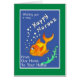 Une carte de voeux amusante "De notre maison à la vôtre" pour le Nouvel An persan, avec un poisson rouge souriant, vous souhaitant, 'Heureux Norooz', d'une illustration aquarelle de Judy Adamson. Vous pouvez modifier le message intérieur si vous le souhaitez.