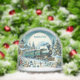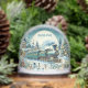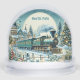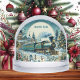 A magic Christmas train to North Pole in the winter wonderland is just the right theme for a Christmas Snow Globe. The design features this whimsical train to meet Santa. On board, you will be served hot chocolates, cookies and cake. The artwork has blue, green and soft gold palette for adornment. The test "North Pole" can be customized.