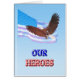 Envoyez un salut à un vétéran avec cette carte de héros. Un magnifique paysage de montagne avec un aigle chauve volant dans le ciel.
